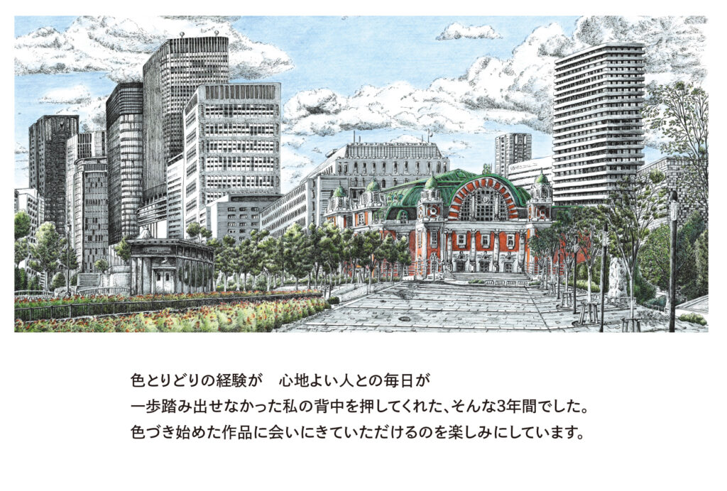 この3年間、絵を描くことがただ楽しいだけではなく、責任が伴った制作は苦しく感じる場面もありましたが、自分を支えてくれたのは「絵を描くことが好きだ」ということでした。