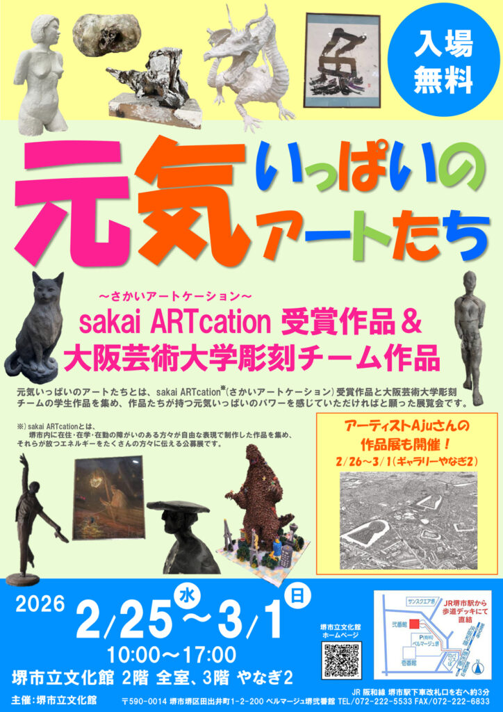 会期期間中、「sakai Art collection」という公募展で堺市在住・在学・在勤の障がいのある人たちの自由な表現で制作した入賞された作品展『元気いっぱいのアートたち』、社会福祉法人 ユウの家『ゆうの家絵画展』も開催しています。